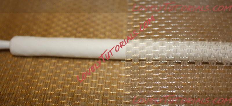 4. Коричневую мастику раскатала, с одной стороны сделала ровный срез, им укладывала к белой части, потом вырезала крышку, прокатала швы.