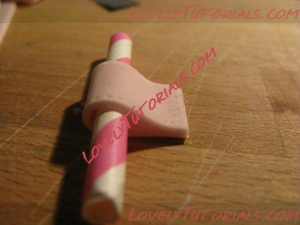 Brush the straw with edible glue and push it into the sugarpaste as shown by the picture.
