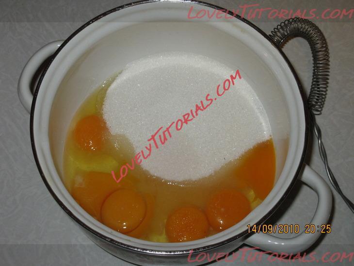 1.смешиваем яйца,желтки,ванильный сахар и сахар до однородной массы.