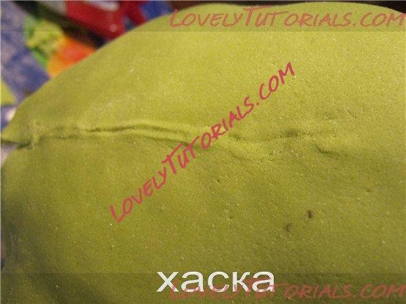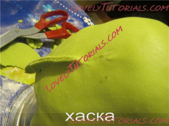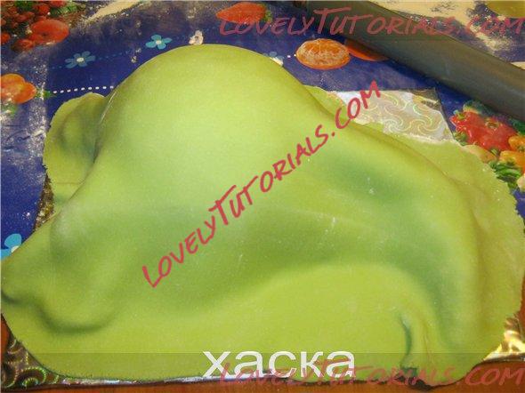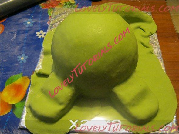 Так как мастики осталось уже ни так много, пришлось раскатывать потоньше, и голову поставить на возвышение, чтобы мастика легла ровнее. Но, увы. Это я так думала. Спереди разровнять я еще смогла, а вот сзади мастика ни как не хотела ложиться без складок.