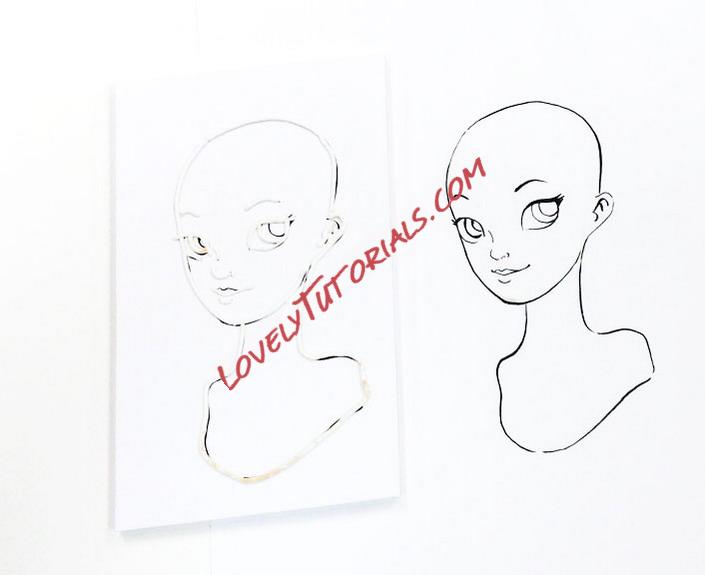 My other person is getting straight hair. I think it will suit her fancy lashes. I make the sections of hair the same way, but give them a pull after texturing, mimicking long, straight hair.