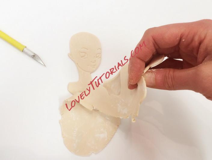 Even with a bust, there is enough of the body to give the impression of a dress. Roll fondant as thin as possible without it tearing. This has to imitate fabric! I don't have a measurement for this, just as thins as possible while still being workable.