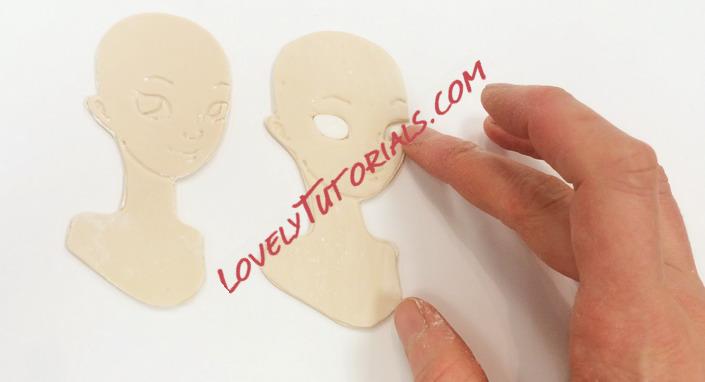 I added eyes into the imprint, but on one of the samples I cut out the eyes and filled them with white fondant.