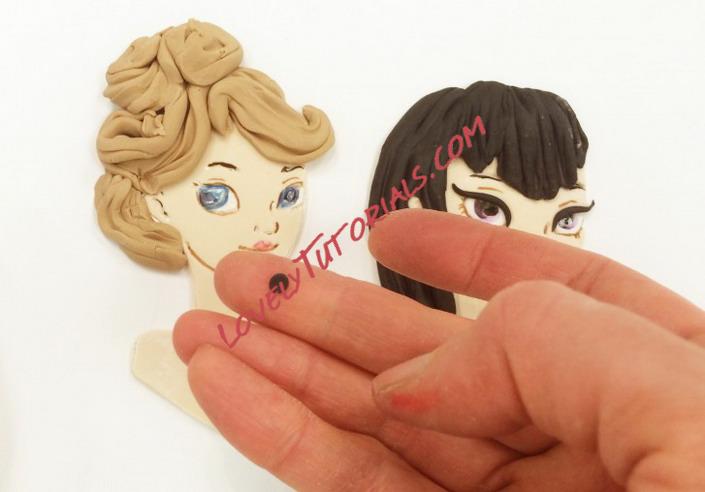 I used a little bit of black fondant rolled into a noodle to give one for my samples dramatic eye lashes.