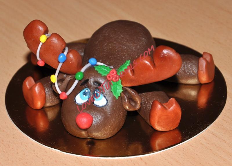 1) Формируем тело, по тому же принципу, как у оленя, оборачиваем красной мастикой
