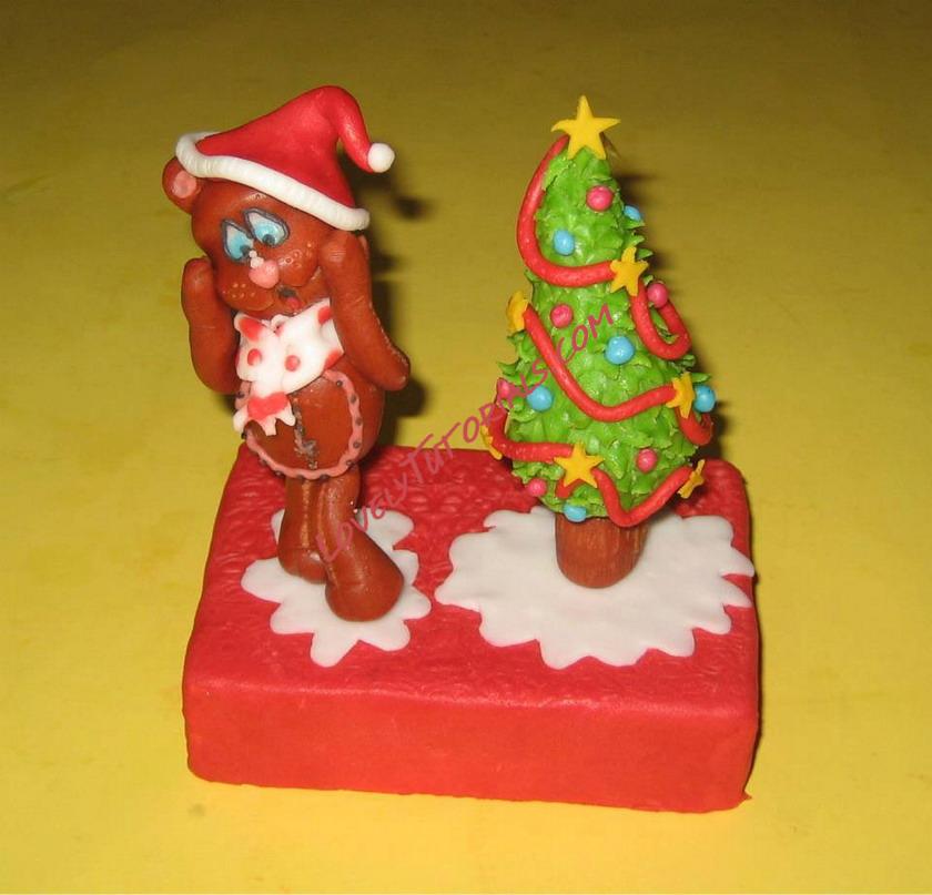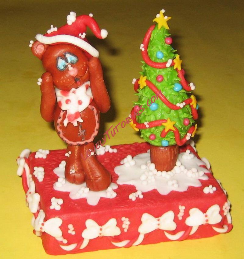 МК лепка "Медвежонок в новогоднюю ночь" -Christmas Bear cake tuorial V1