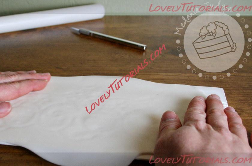 Step 3: Carefully lift the fondant sheet and place it on the lace mold.