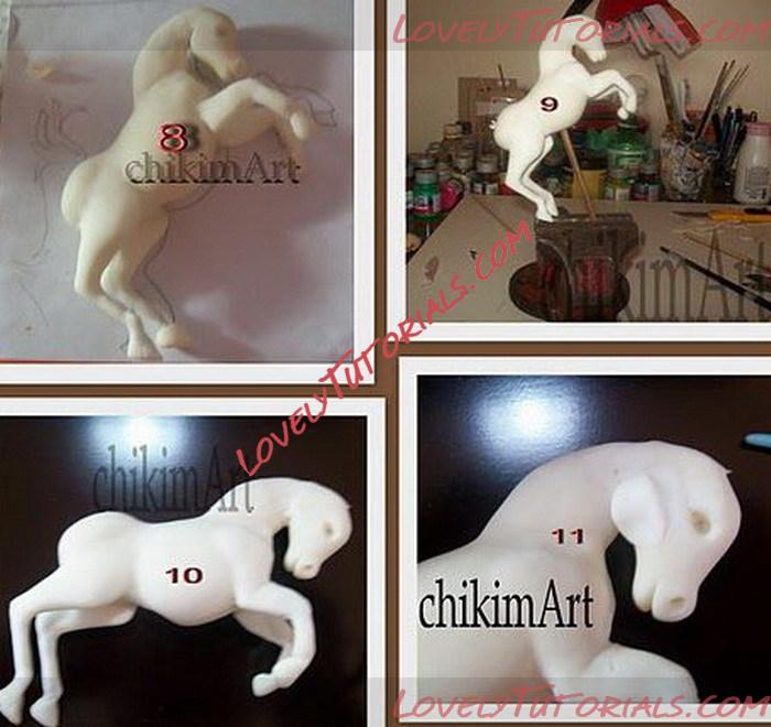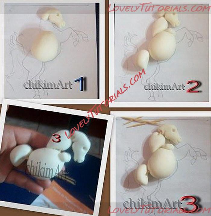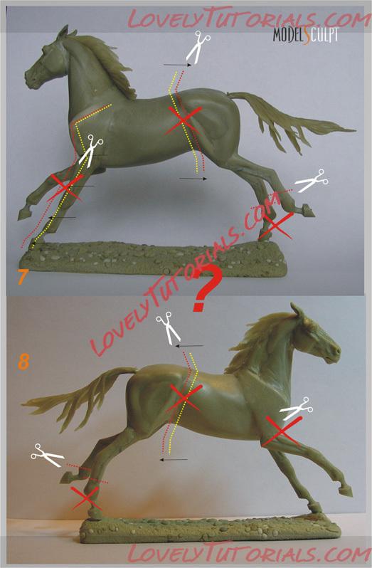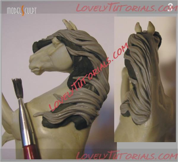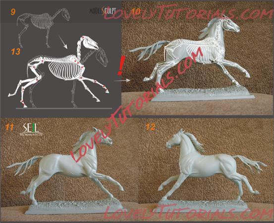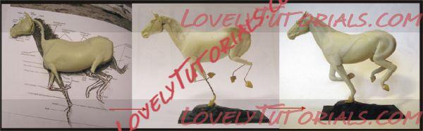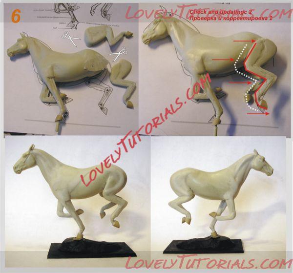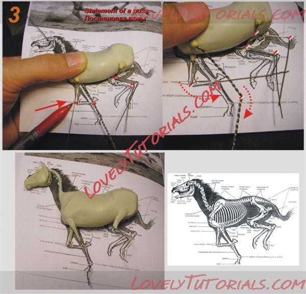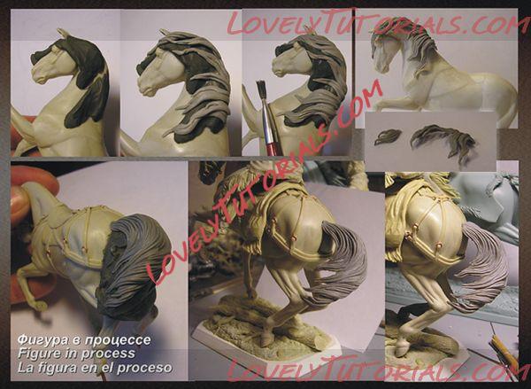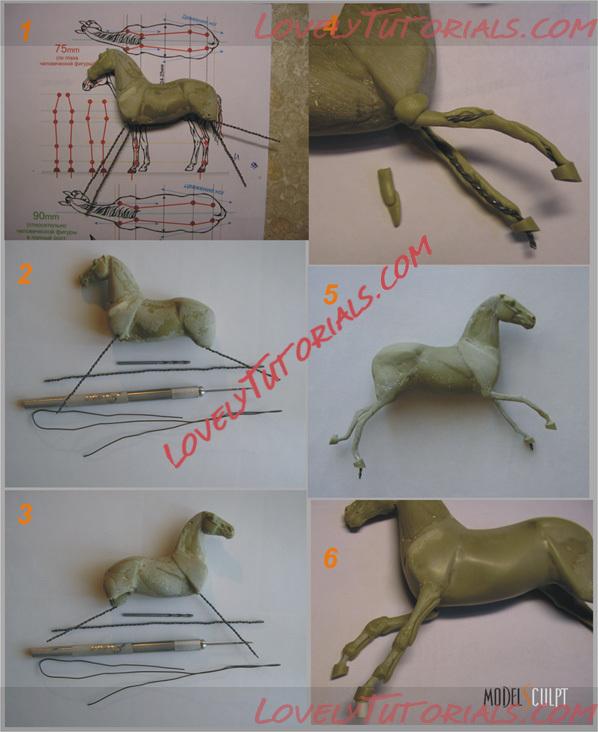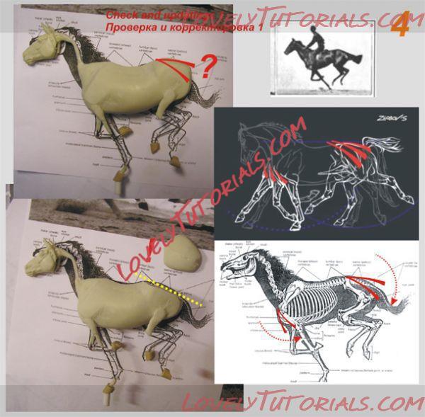 Следующий вариант, вылепить можно также основываясь на рисунок, пусть не достоверно, но по крайней мере сохранить правильные пропорции лошади. В этом случае, я вылепила основу из ММ, но замесила очень круто и пришлось тонким слоем накладывать мышцы из "Зеландии".