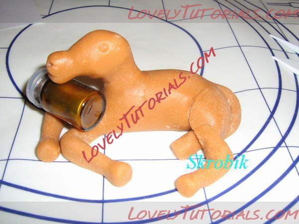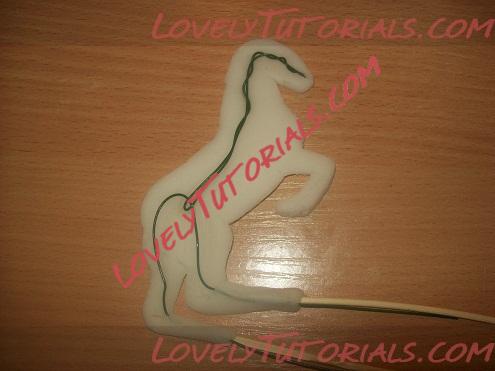 Затем, в первом варианте, я перевела с кальки на мастику контур, вырезала и сделала заготовку, с тем, чтобы нарастить потом мышцы на основу. Сделала из проволоки каркас и начала наращивание с морды. К сожалению промежуточных фото нет, моя мыльница в потемках не берет.... Смысл заключается в том, что наращиваются мышцы и все объемные части на одной стороне, сушите, переворачиваете и наращиваете другую сторону. Лепила из "Зеландии", получилась очень мягкая и долго сохла. Поэтому не смогла вовремя закончить её. Пытаясь установить на дыбы, шпажки прорывали заднюю часть. Поэтому, советую лепить из более плотной мастики.