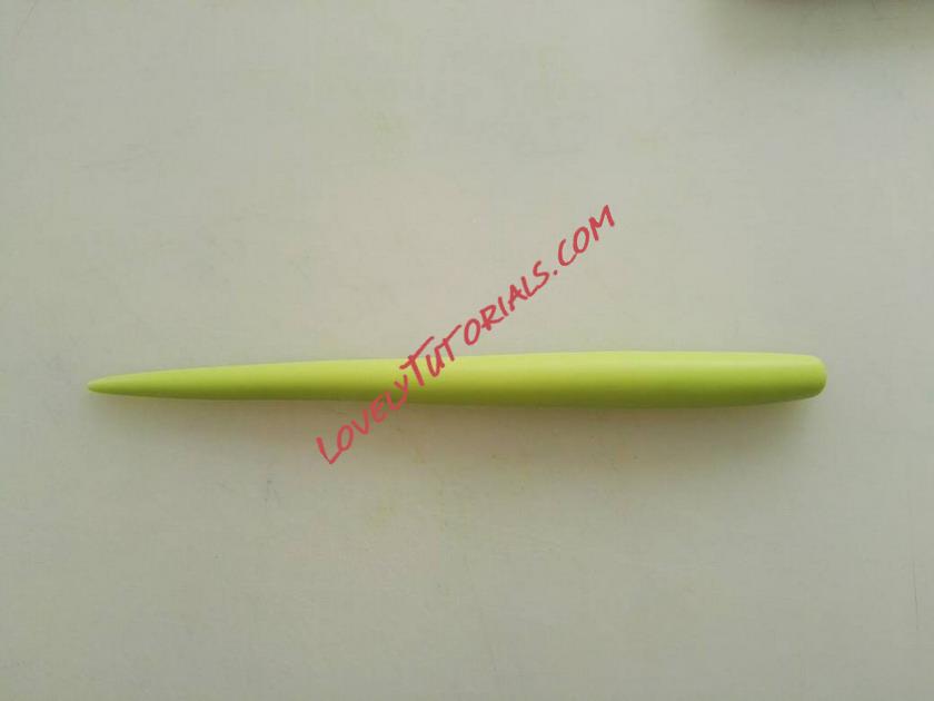 Из зеленой глины раскатываем колбаску, одна сторона которой должна быть толстой, другая – тонкой.