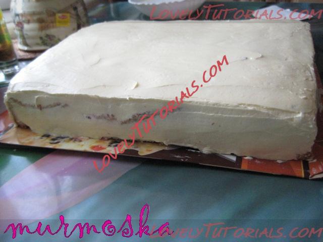 Безусловно, чтобы хорошо легла мастика, и торт хоть издалека напоминал прямоугольник – выравниваем его кремом из сливочного масла и сгущенного молока.