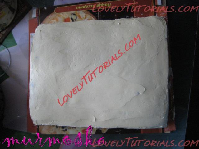 Безусловно, чтобы хорошо легла мастика, и торт хоть издалека напоминал прямоугольник – выравниваем его кремом из сливочного масла и сгущенного молока.