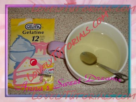 Листовой желатин замачиваем в небольшом количестве воды на полчаса. Когда желатин разбухнет, сливаем лишнюю воду, нагреваем его в микроволновой печи (но не кипятим!!!!) и размешиваем до прозрачности.