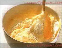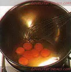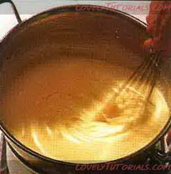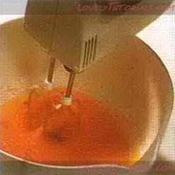 Яйца, яичные желтки, сахар и цедру лимона взбивают на водяной бане до образования пены и полного растворения сахара. Масса должна быть при этом теплой, но не слишком горячей.