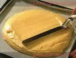Совет. Бисквитные коржи выпекают в форме со съемным кольцом, дно которой выкладывают пергаментной бумагой или смазывают жиром. Стенки формы не должны смазываться жиром, иначе тесто в процессе выпекания будет подниматься только по центру.
