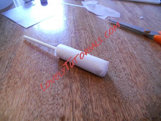 I starded the ''cake'' process by building the scructure, which is a wood board, on wich I added some foamcore to be able to cut out a circle to ''hide'' the flange. I also used a 1\2 inch pvc pipe and a 3\4 inch couple. The board is a 12 inch square and the cake is about 15 inch tall. This is my second (or maybe third) cake scructure... so I wanted to keep it simple. I also used foamcore and bubble tea straws for support in the cake.