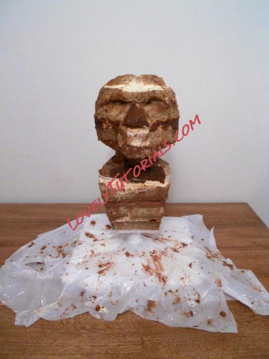 I covered it's head in a mix of fondant (2 of them actualy, satin ice and micmac) and modeling chocolate. I wanted the best of both worlds, and it worked like magic. I worked about 2 1\2 hours on the head only. It was the best part, I can't wait to try something like this again. I made a video of this part by the way.
