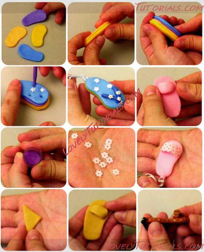 МК лепка "шлёпанцы" - Gumpaste (polymer clay)Flip-Flop making tutorials V2