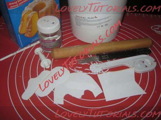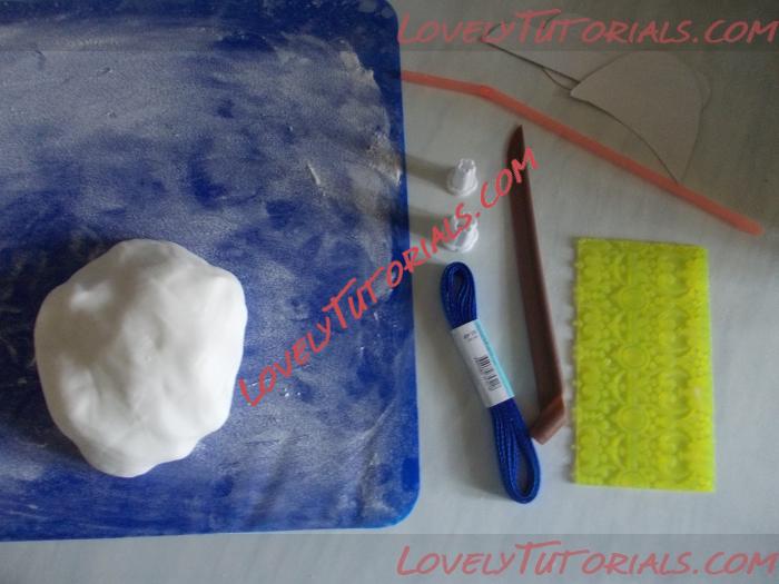 1. Итак, нам понадобится:мастика, сахарная пудра, силиконовый коврик, текстурный коврик, стек (острый), атласные ленты, кисточка, вырубка для маленьких цветочков и коктейльная трубочка.Название: 2.jpg