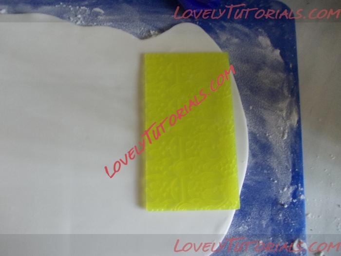 2. Раскатываем мастику в пласт толщиной примерно3-4 мм. Прижимаем текстурный коврик, чтобы получить нужный нам ажурчик) Название: 3.jpg