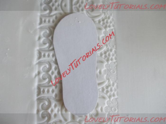 3. Прикладываем выкройку подошвы и аккуратно вырезаем стеком. Повторюсь, что стек должен быть острым, дабы не растянуть мастику! Деформация нам ни к чему! Название: 4.jpg