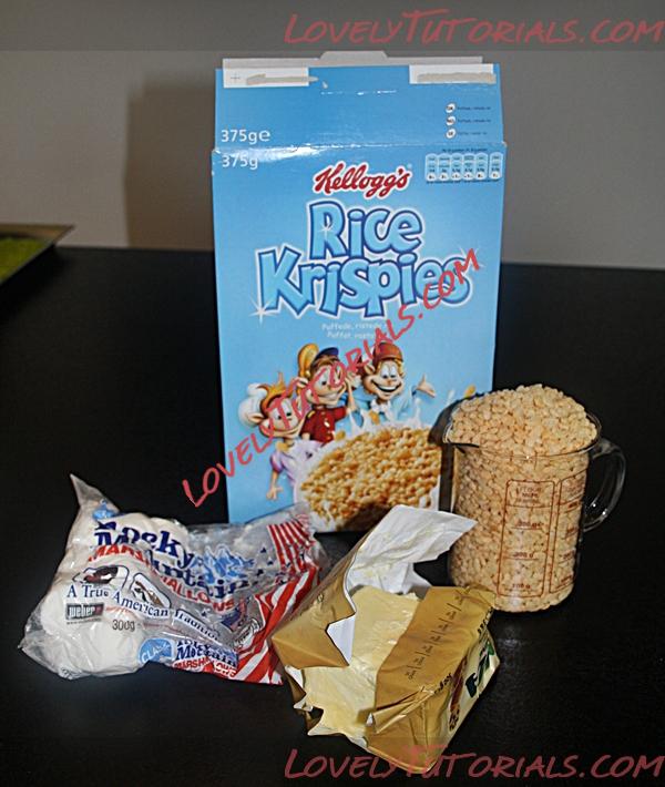 1. Для РСМ нам нужно: 50 гр. маргарина или масла сливочного, 200 гр. маршмэллоу ( цвет не важен ), 160 гр. рисовых хлопьев для завтраков ... они должны быть именно такими, как у меня на фото. Из этого кол. продуктов получается довольно большая порция и я сократила всё в половину и всё равно было многовато для моих детских носочков. Но из остатков можно сделать шарики или другие формы и хранить в сухом, прохладном месте ( это если вы, как и я делаете РСМ с маргарином, который не требует хранения в холодильнике ).