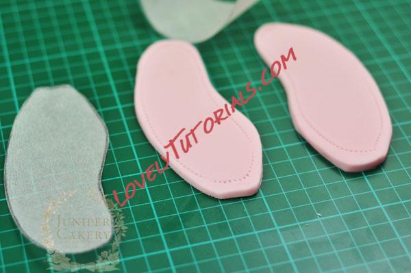 Roll out some soft pink gum paste to a thickness of around 4mm and carefully cut out your pieces.