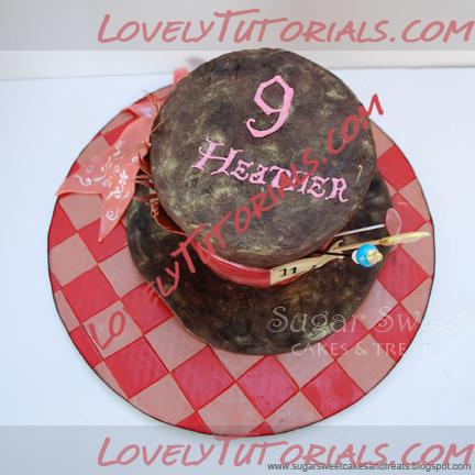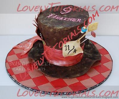 Alice In Wonderland font for the name and age. And made 2 dozen assorted "Eat Me" Petits Fours to go with the Hat Cake.