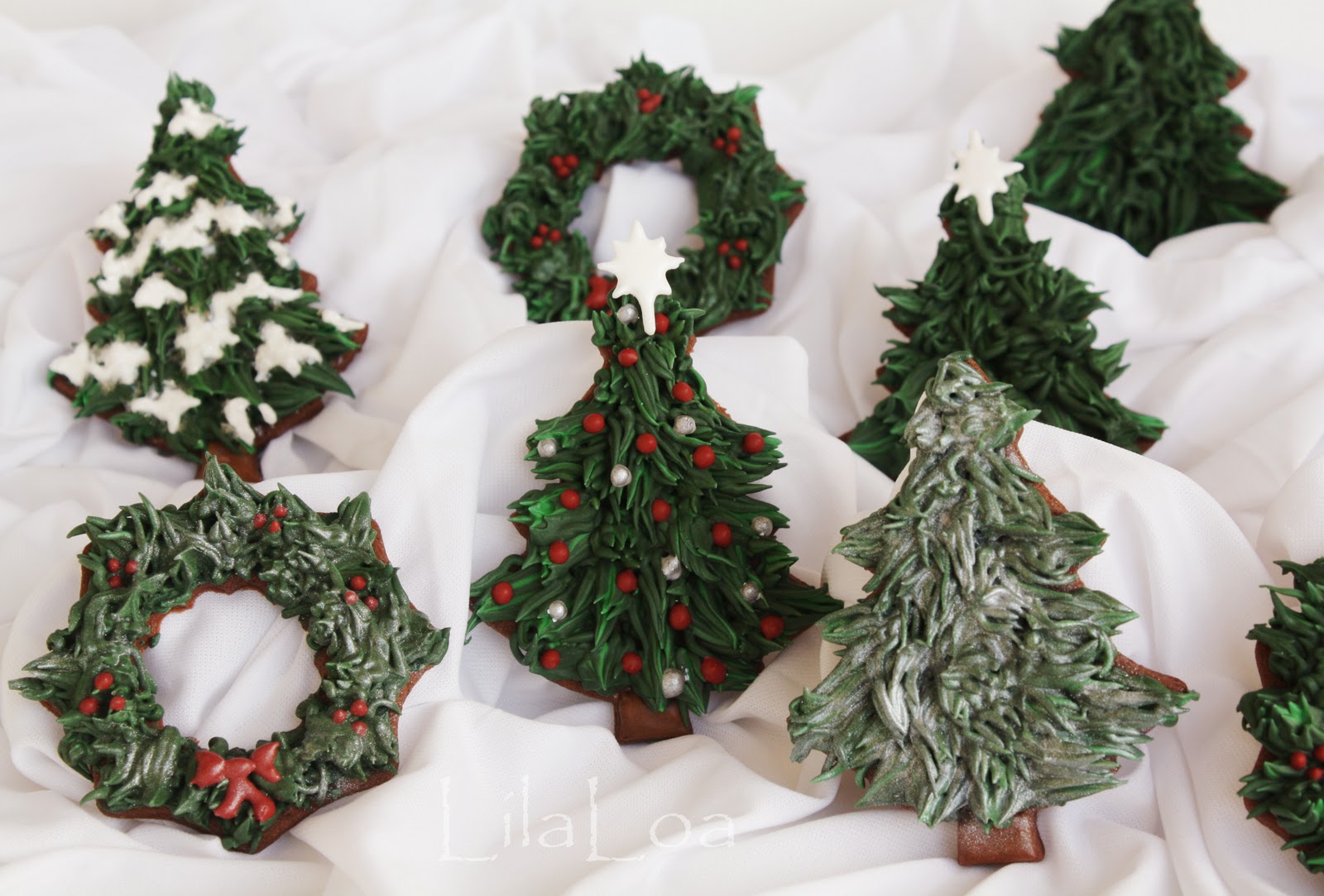 Oh, and you can make wreaths the same way. And just think about all the possible decorations you could add to these trees...sprinkles and sugar pearls and shiny stuff and...you know... more stuff. But if you are going to add some kind of beautiful and creative decorations, you should do it IMMEDIATELY after piping all the branches. Trust me on that one.
