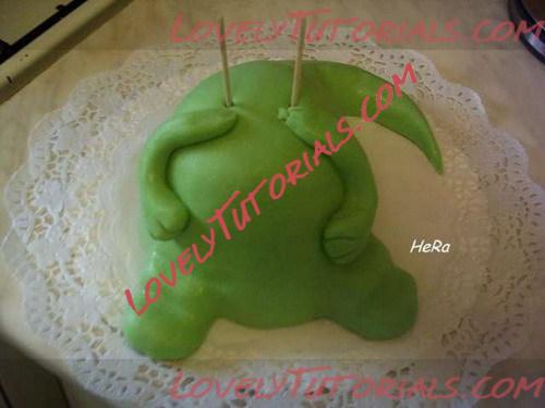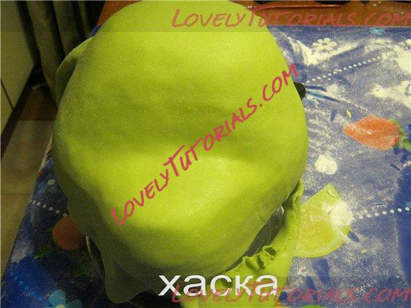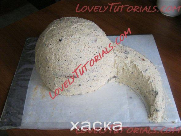 Так как мастики осталось уже ни так много, пришлось раскатывать потоньше, и голову поставить на возвышение, чтобы мастика легла ровнее. Но, увы. Это я так думала. Спереди разровнять я еще смогла, а вот сзади мастика ни как не хотела ложиться без складок.
