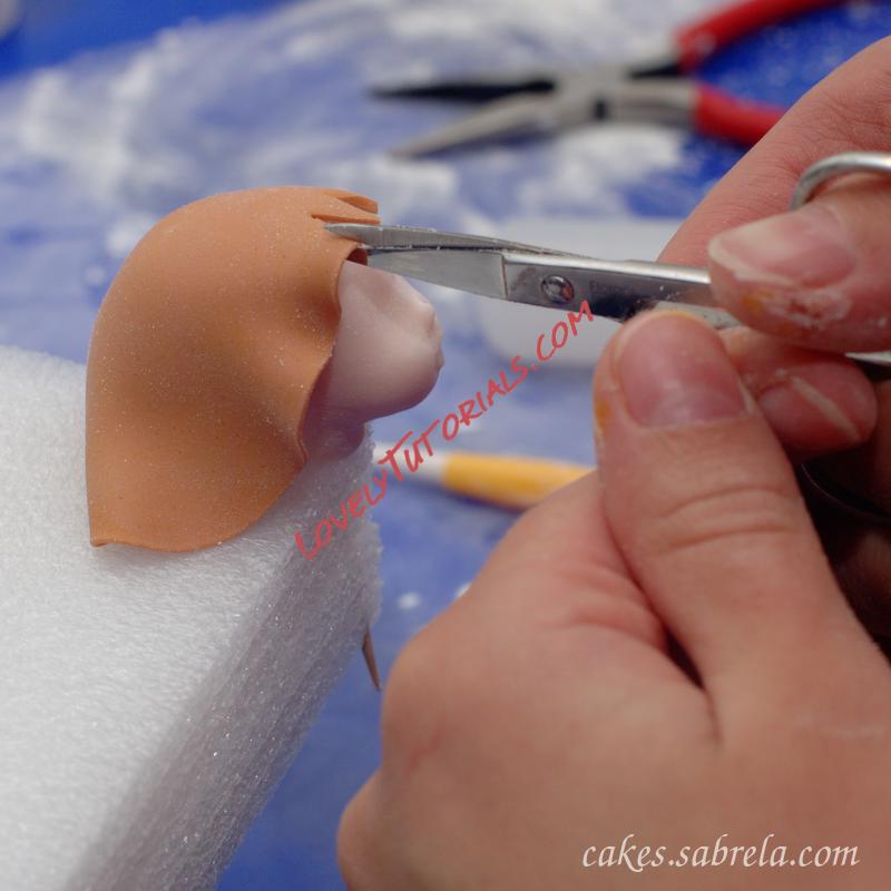 Маленькими ножничками формируем прядки,обрезаем все лишнее,приглаживаем нижний край мастики.