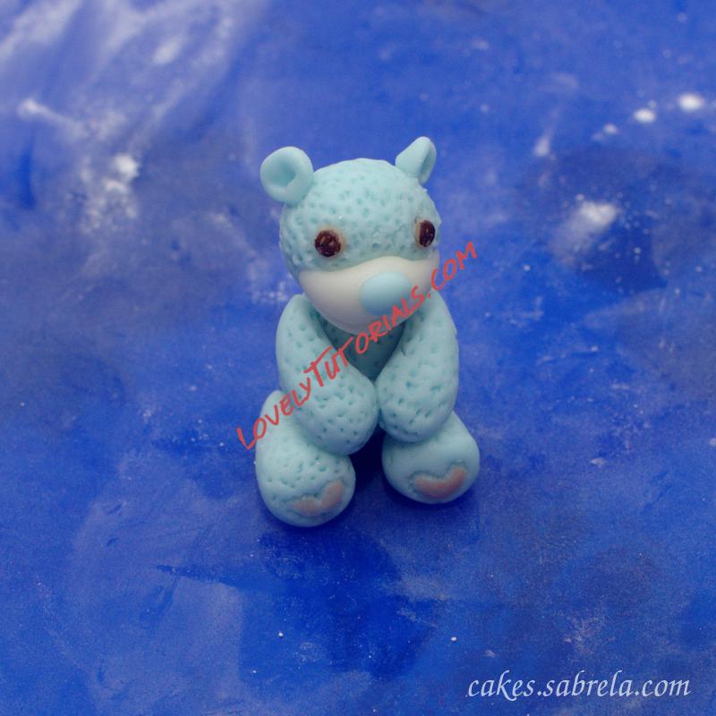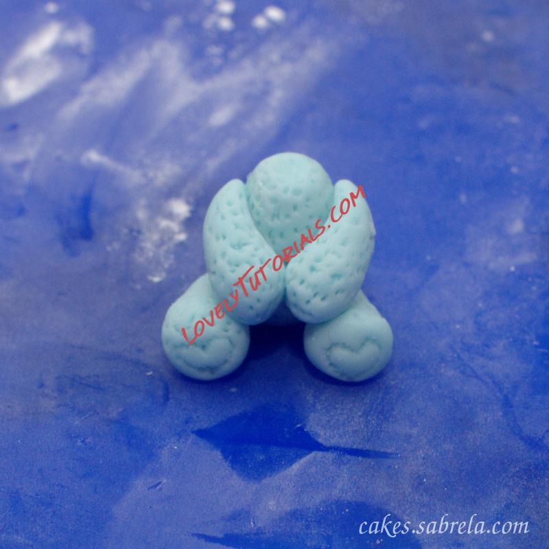 2. Туловище мишки с лапами.Из голубой мастики делаем колбаски-лапы, приклеиваем на спец.клей или воду к туловищу.