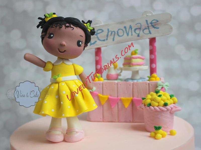 for the puffy piggy tail Roll two pieces of fondant of the same size, cut some lines avoiding one edge, then roll it and separate the pieces a bit to make it look fluffier. Add half toothpick on each side of the head and glue the hair as sort of piggy tails,You can even add some little bows , i added some lemons.