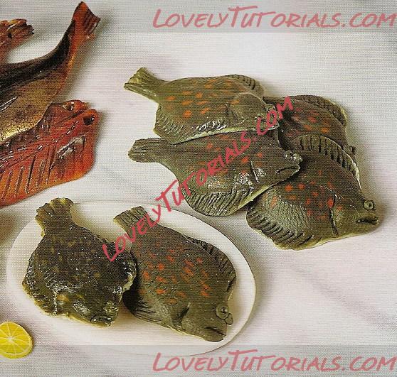 МК лепка камбала -Gumpaste (fondant, polymer clay) plaice fish making tutorial