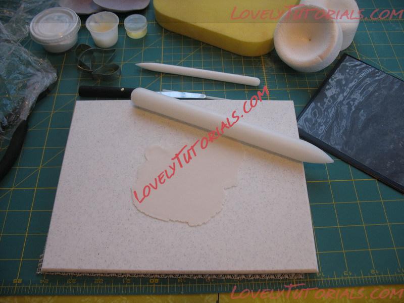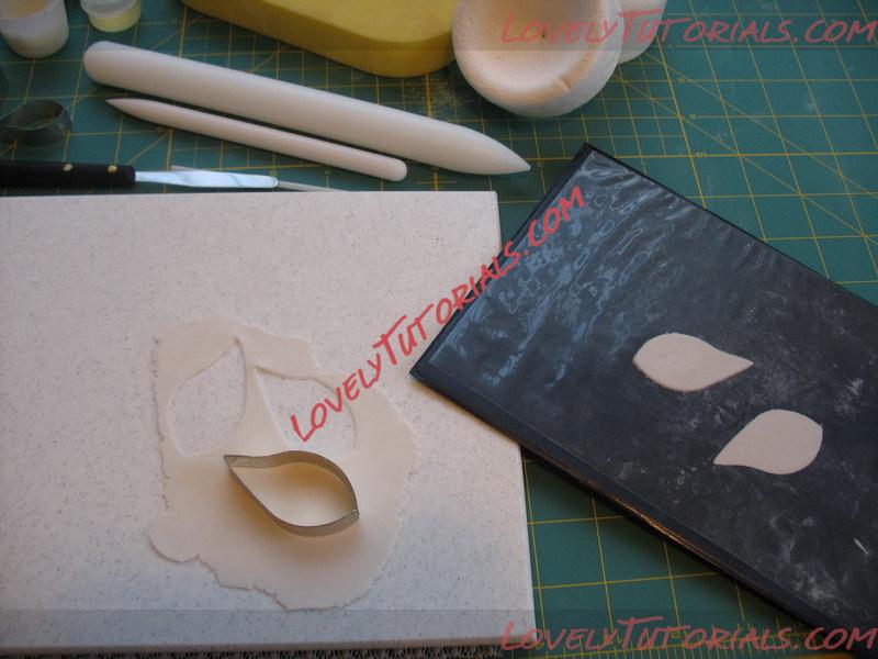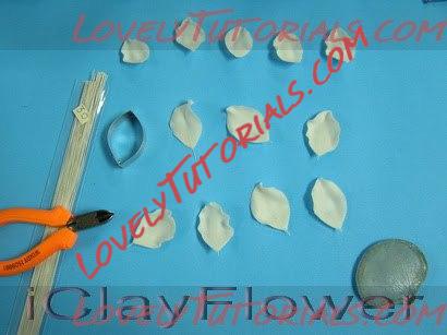 Since I am making this version of the Gardenia in gumpaste for the first time I had to find the right cutters in my collection to cut out the petals.. some trial and error to get what I wanted but finally I found a match that I liked. Here are all the tools necessary to make this beautiful flower in gumpaste.