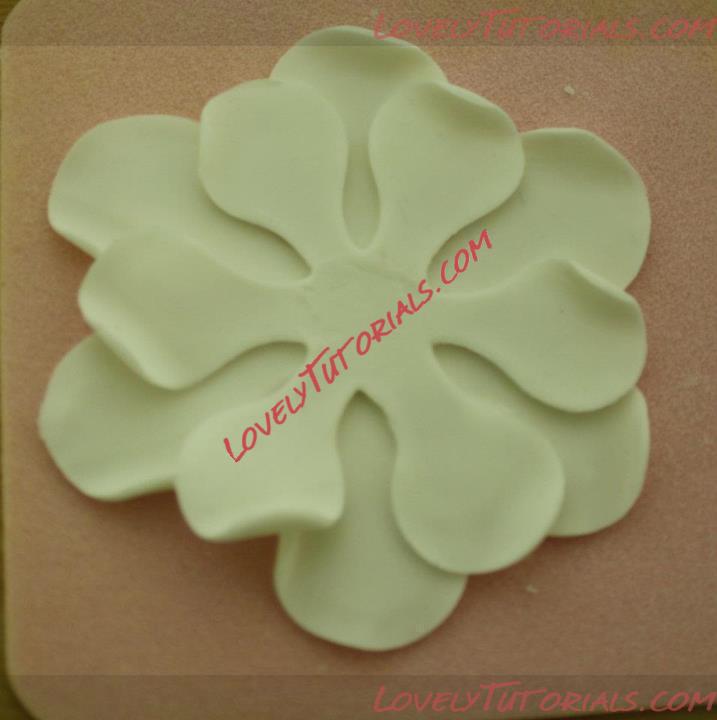 Теперь нужно собрать их в цветок. Для середины возьмем 4 лепесточка, пять лепесточков вокруг середины и еще 5 по краю (см. картинки)