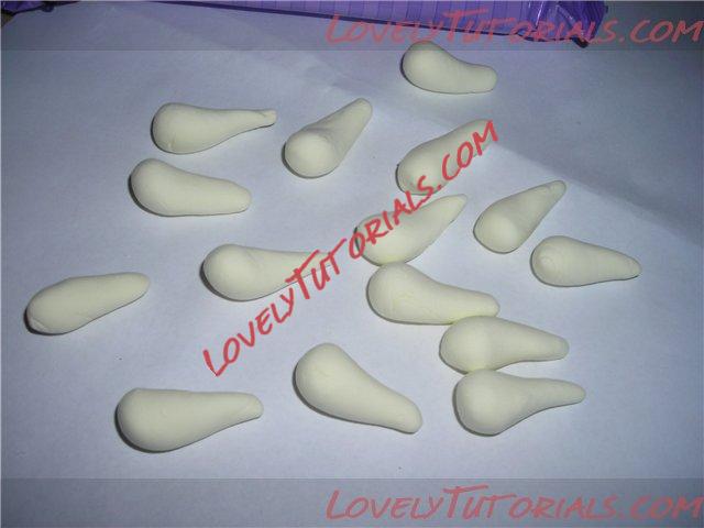 И превратим шарики в "конусы". Делаем это, положив шарик на ладонь, раскатывая и слегка прижимая при этом один конец