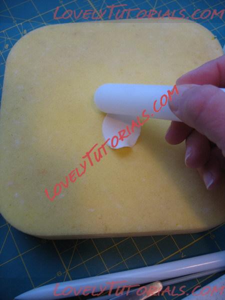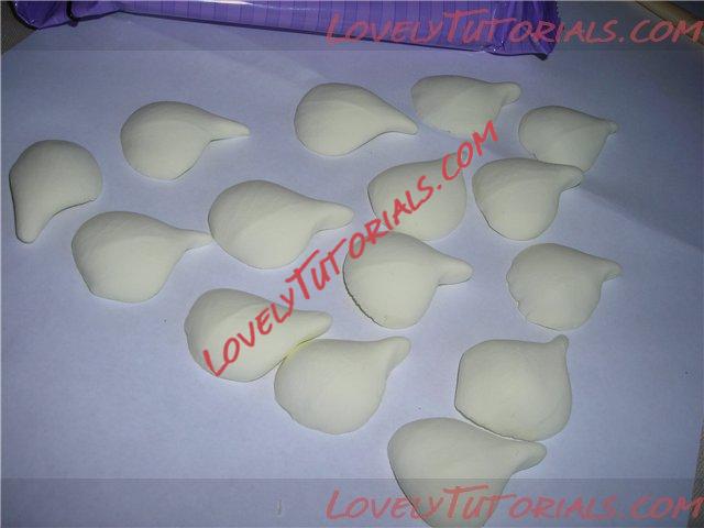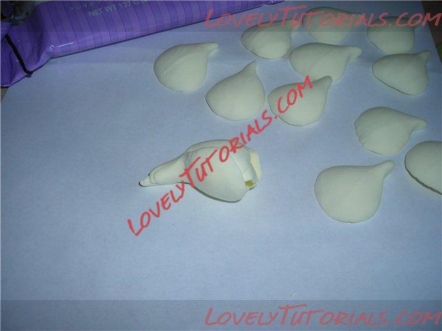 Теперь "конусы" превращаем в лепестки. Кладем каждый на ладонь и расплющиваем, придавая лепесточку форму "ложечки", т.е. лепесток вогнут вовнутрь. Середину при этом оставляем потолще, а края делаем потоньше. Получаем готовые лепестки