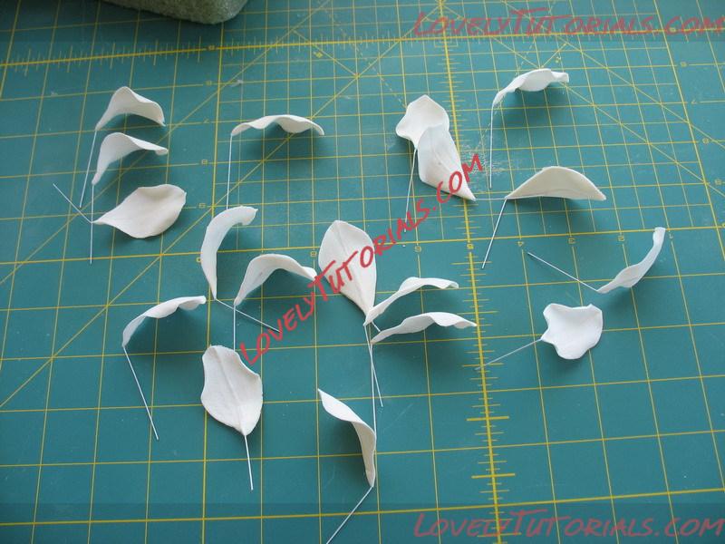 Once I have softened the edges I start to shape the gumpaste to give the petals a more natural flowing look. This where you have to work sort of swiftly before the gumpaste dries. Next, I place them in former to dry completely making sure they don't loose the shape I gave them while placing them.