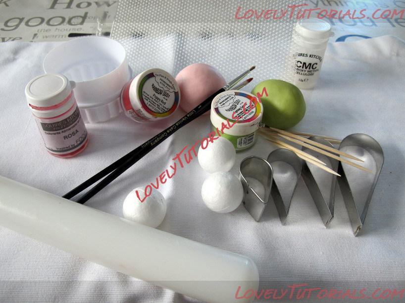 Make a ball of green gumpaste the size of a macadamia nut or use a measuring ruler to make uniform balls