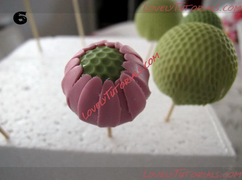 Indent a small circle in the middle of the ball using a 4mm or #3 round piping tip.