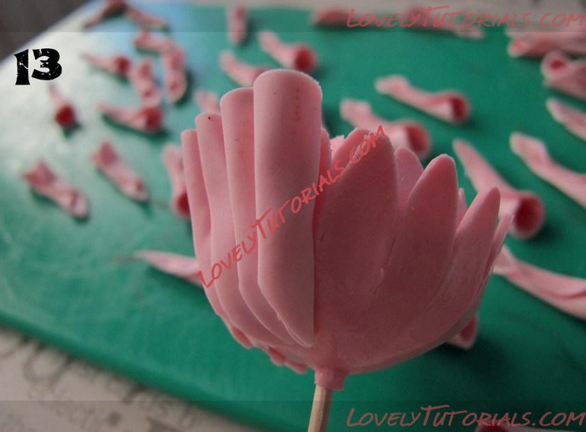 Brush a small amount of edible glue on the petals and attach around the center of the flower.