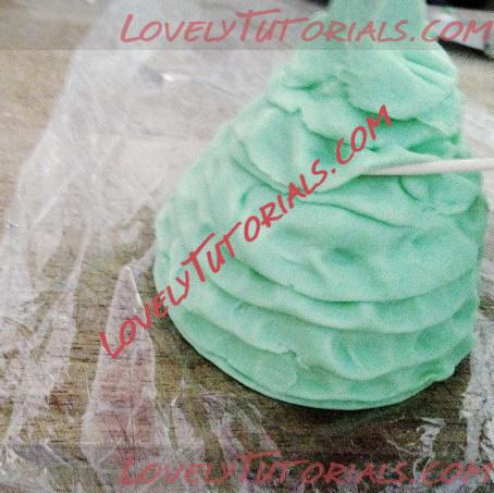 Мастику раскатываем в виде конуса по высоте елки. Надеваем на шпажку и в холодильник. Это основа нашей елки