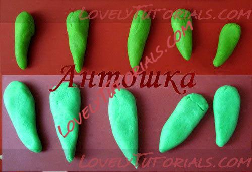 Раскатали маленькие конусы разной длины и ширины для веток, слегка приплюснули пальцем.