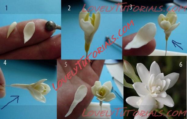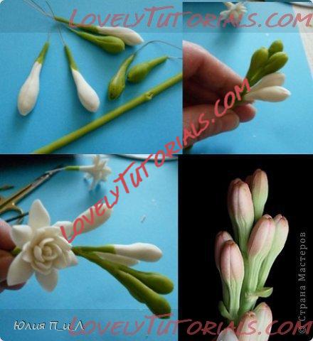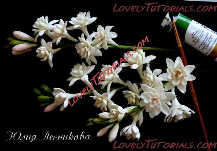 МК лепка "Тубероза, или Полиантес клубненосный" -Gumpaste (fondant, polymer clay) Tuberose (Polianthes tuberosa) step by step