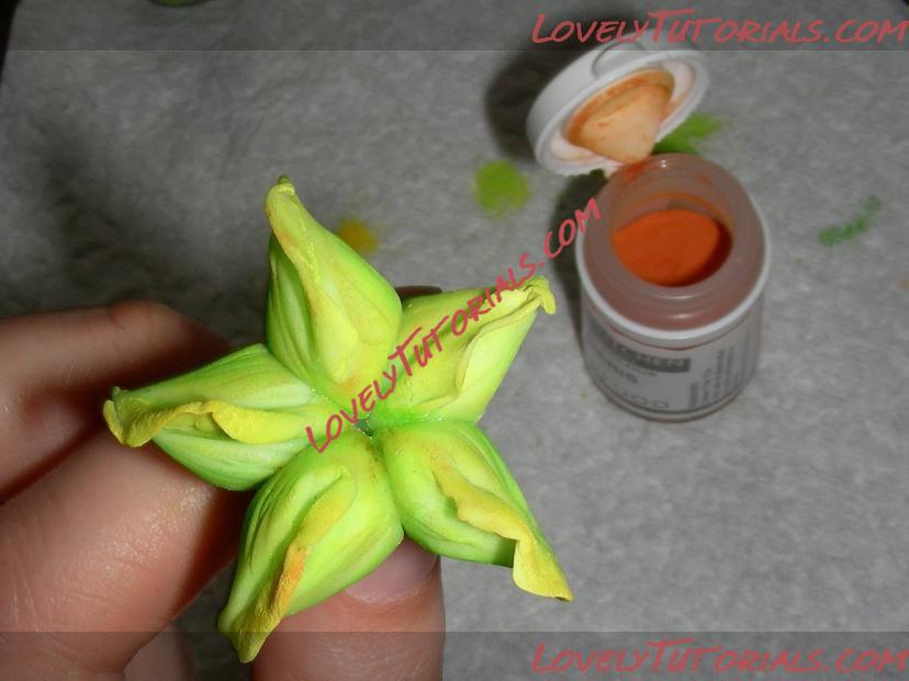 Die inneren Blütenblätter werden nun mit dem sogenannten Basalfleck bemalt, der sich auch auf der Unterseite der Blüte befindet (das habe ich mir aber gespart, wer kuckt die Blüte schon von unten an??).