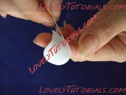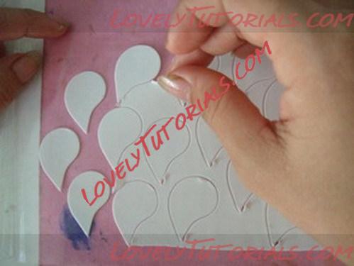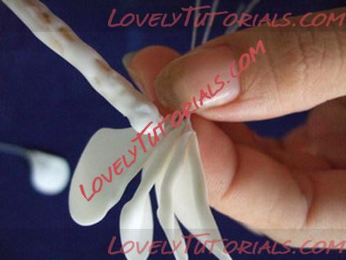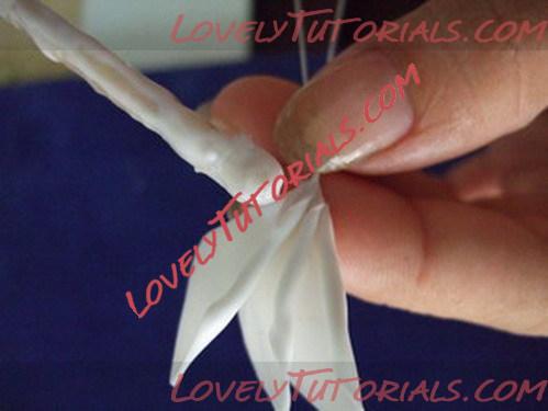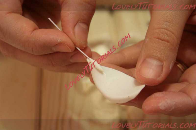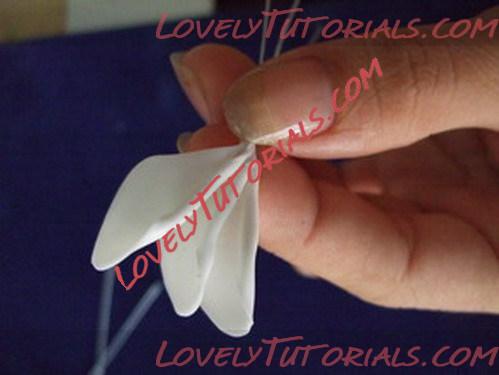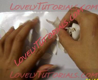 Dust both sides of petals and arrange them in a fan shape. Press the sharp ends together to prevent movement of petals in the next step.