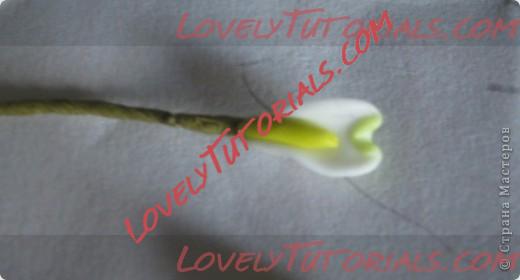 Теперь пальцами мы закрываем проволоку полимерной глиной по всей длине.Возьмем наш цветок и положим его на край,что б равномерно раскатать нижнею часть стебля делая ее более круглой и завершающей частью этого процесса является заглаживание глины водой,слегка смочив пальцы водой устраняем все не ровности и стыки стебля.