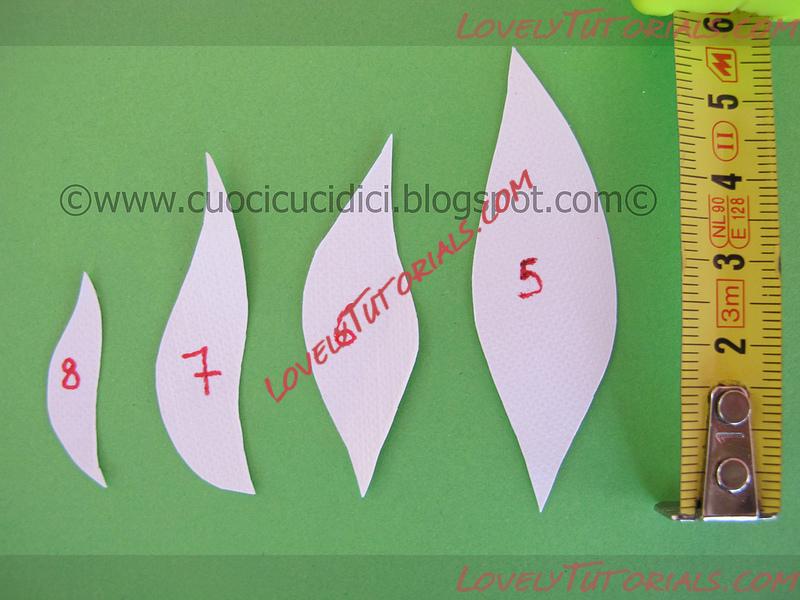 -Copied templates for petals and leaves on paper with the proportions in the photos.