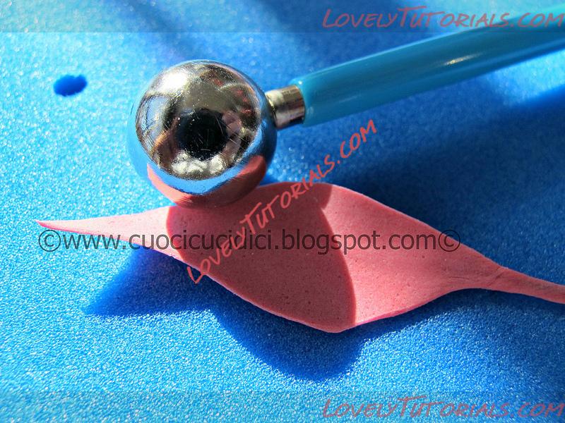 Раскатав и вырезав один лепесток, фактурим его на молде. затем подкатываем края.